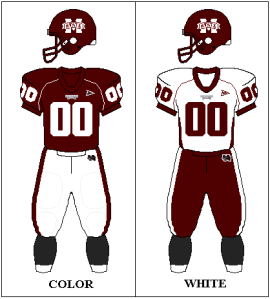 Its very tough when your two main colors are a dark shade and white. There isn’t much flexibility with these options. They’ve tried a black jersey but it constantly clashes with the maroon helmet, making for a bad looking two-toned appearance. I admire the loyalty to school colors so I’m not going to give a failing grade (wait till I get to Boise State’s preview) but this barely passes. Furthermore, I don’t have an alternative to suggest. If I come up with something, I’ll send it to the athletic department. Grade: C-