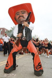 Pistol Pete is another mascot that seeks to enter the dreams of little children and cause nightmares but he does get bonus points for carrying a live weapon with him. Firearms are ALWAYS acceptable for mascots.
