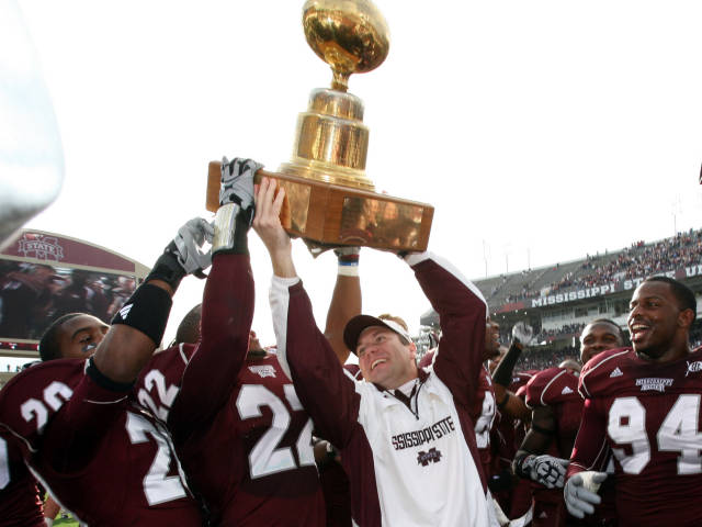 Thanksgiving years ago back in the NYC, I’m changing channels trying to watch some more football after a Dallas Cowboys’ game. I turn to ESPN and see two teams battling for a trophy that shaped like an egg. I thought that was bad ass and make a point to watch the Ole Miss/Mississippi State contest for a few minutes every year just at the off chance to see that awesome egg trophy.