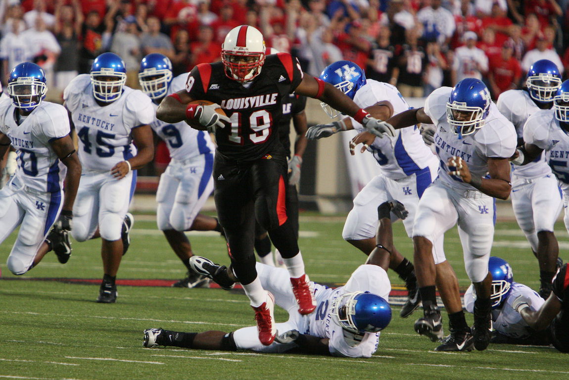 My favorite all-time Louisville player was running back Michael Bush who played for the Cardinals from 2003-2006. He was one of the most physical running backs I’ve ever seen, with a style similar to Earl Campbell but also had speed and excellent footwork like a Jerome Bettis. He had an outstanding junior year rushing for 1,143 yards and 23 touchdowns. Bush came back for his senior year and broke his leg in the first game against Kentucky. He’s missed football for two years due to that injury and has had an inconsistent NFL career. Its a shame because I believe he would have been the next great NFL back without the injury.